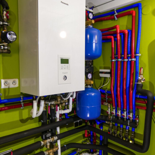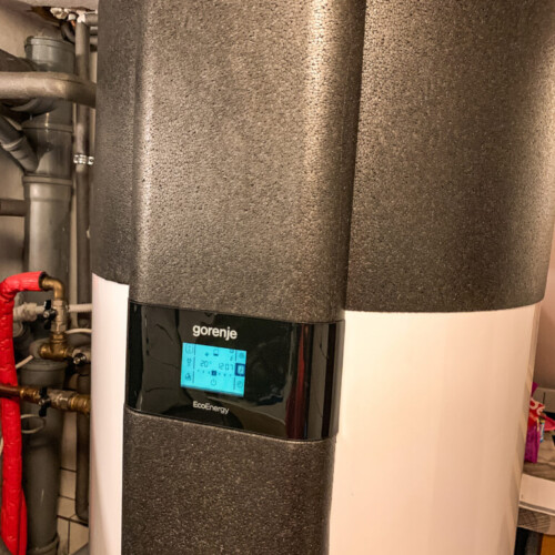 instalacja pompy ciepła z rekuperatorem. Pozwala ona odzyskiwać energię z ogrzewania domu i za jej pomocą podgrzewać CWU, czyli ciepłą wodę użytkową.